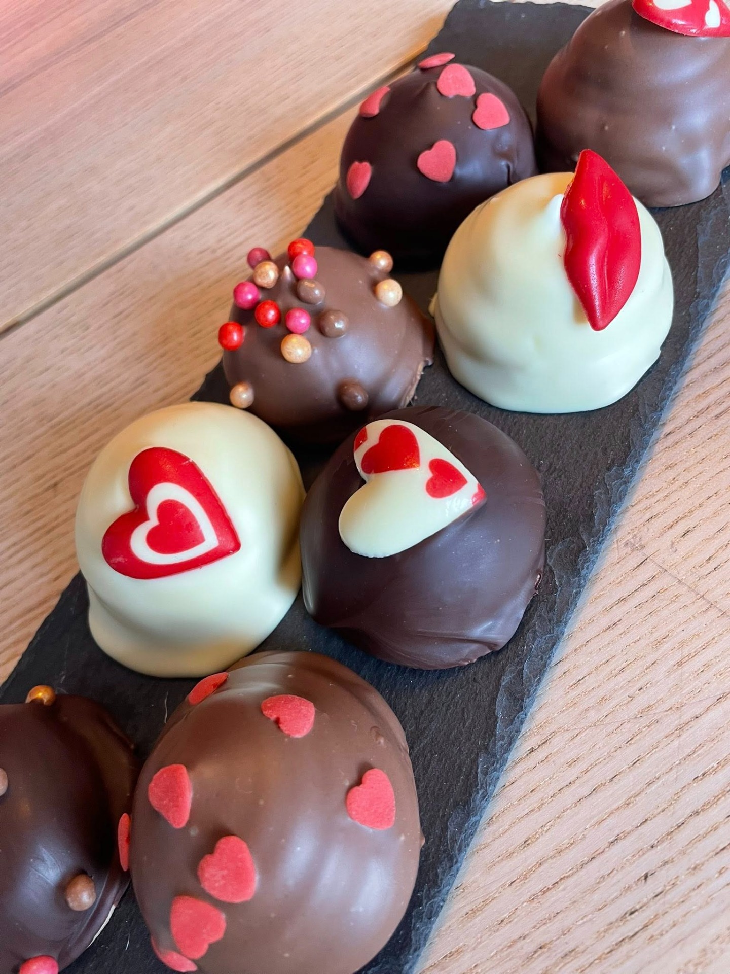 Leisteen met 8 valentijn melocakes